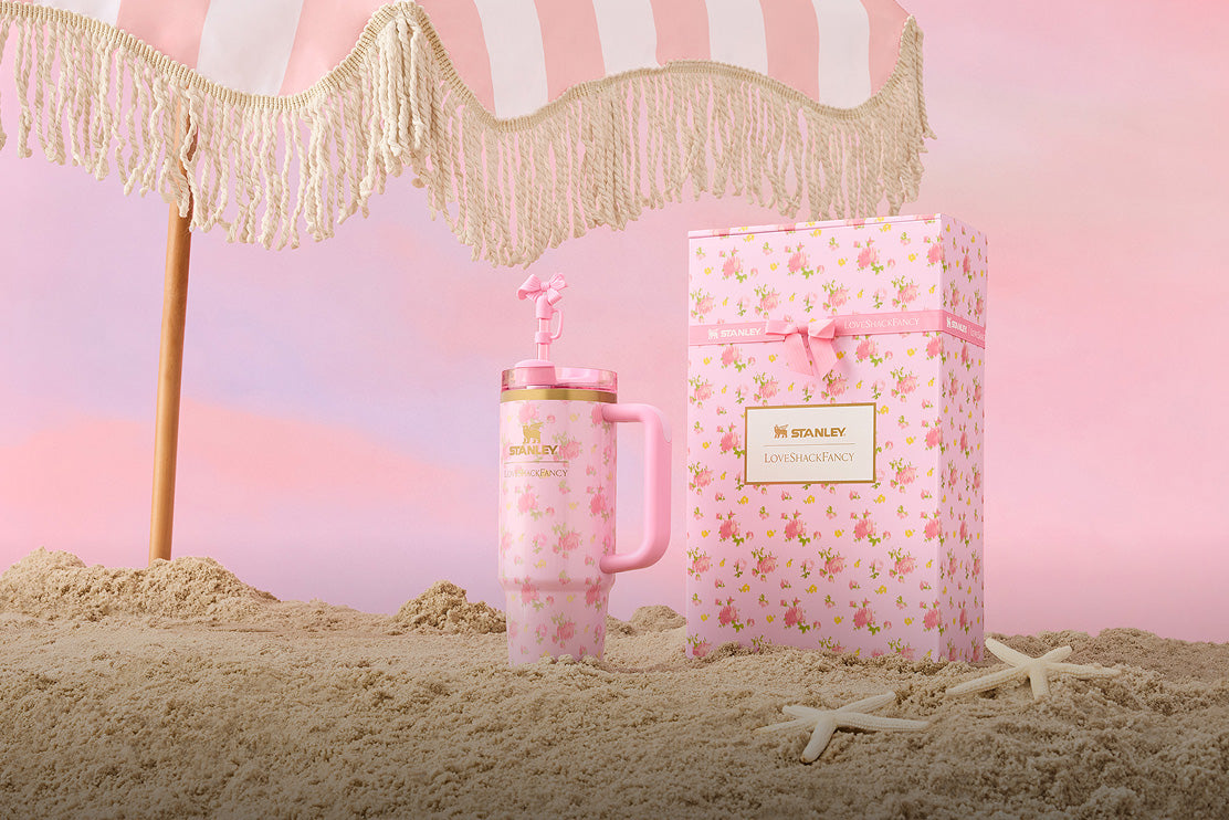 Sip in style where heritage meets romance. The Ibiza Sunset Quencher celebrates over a century of Stanley craftsmanship, reimagined with LoveShackFancy’s signature feminine touch. Drenched in warm, sunset-inspired hues with delicate floral accents, this 40 oz limited-edition tumbler is more than drinkware—it’s a keepsake for dreamers, romantics, and everyday adventurers.